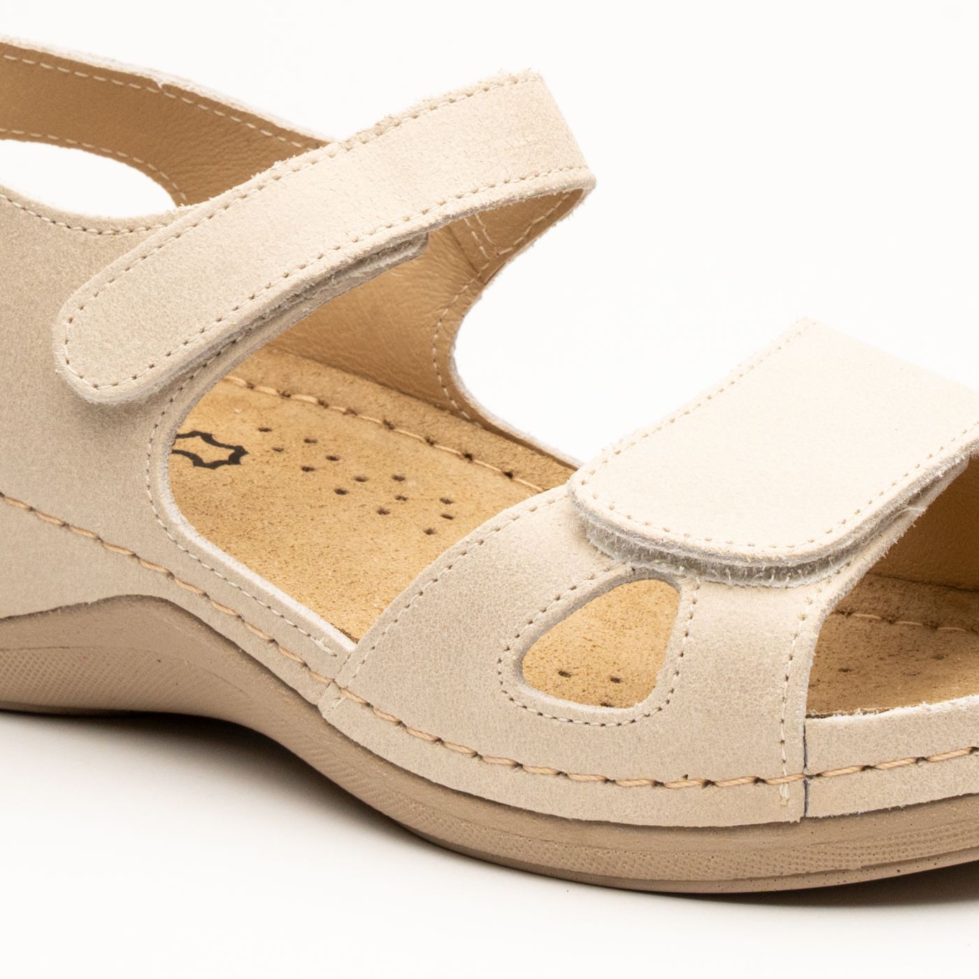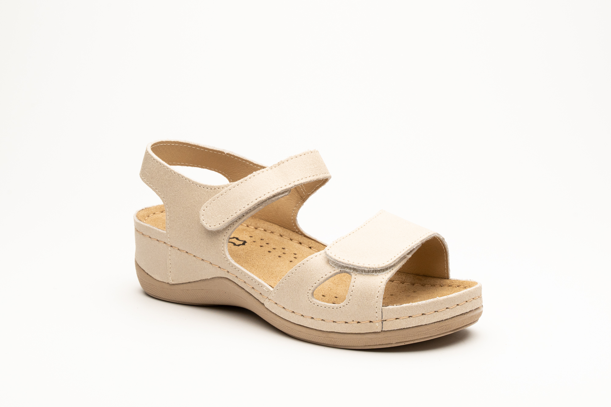 Ženska sandala izrađena od prirodne kože i kožnom tabanicom koja sadrži masažni gel. Đon je napravljen od poliuretanske mase koji sadrži anti – slip čep koji sprečava klizanje.